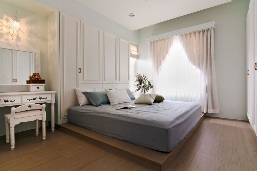 1、在家具選配上,通過擦漆做舊的處理方式,搭配貝殼、鵝卵石等,表現出自然清新的生活氛圍。.