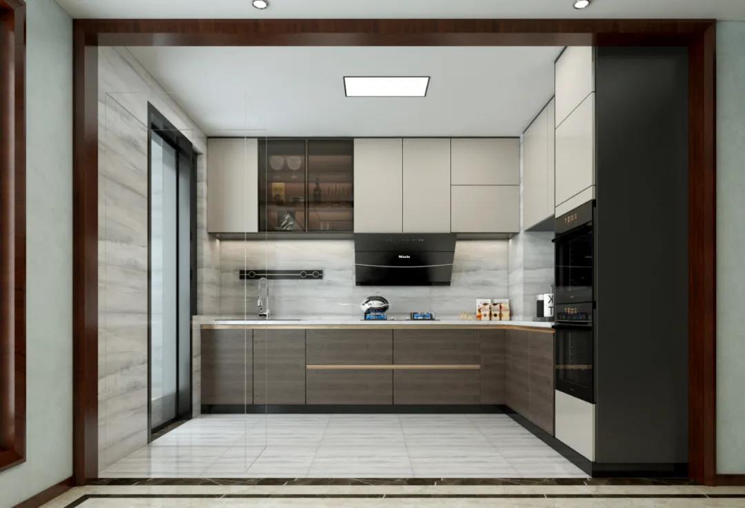 廚房操作臺做L型設計,動線流暢,寬敞便捷。生活陽臺與之連通,相對擴寬廚房的適用范圍。家電配備齊全,烘焙、烤制都不在話下。