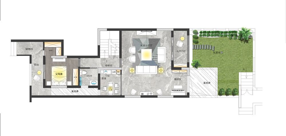 此設計為星麓原洋房底躍,面積330平方,常駐5口人家,負一樓層高為5860毫米,可以做現澆設計成兩層,負二樓設計為影視廳,健身區(qū),把廚房改造負一樓,使空間合理利用,有一個客房考慮在負一樓,不常住,吃飯娛樂,一樓設計為會客廳,茶區(qū),父母房,父母年齡大了,盡量少走樓梯,二樓就是主臥,女兒房,還有次臥。