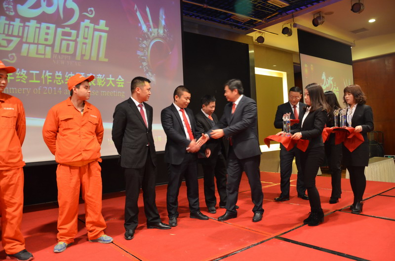最后進行的是本次大會的一項重要議程——表彰大會。來自南坪、江北、沙坪壩和工程部的13位優(yōu)秀員工受到了嘉獎表彰,李總、張總、文經(jīng)理分別為獲獎?wù)哳C發(fā)了榮譽證書和獎金。在2014年,這些優(yōu)秀員工在自己的崗位上,愛崗敬業(yè),為公司的發(fā)展奉獻青春和熱血,在平凡的崗位上做出了不平凡的成績,是所有新思路人學(xué)習(xí)的榜樣。