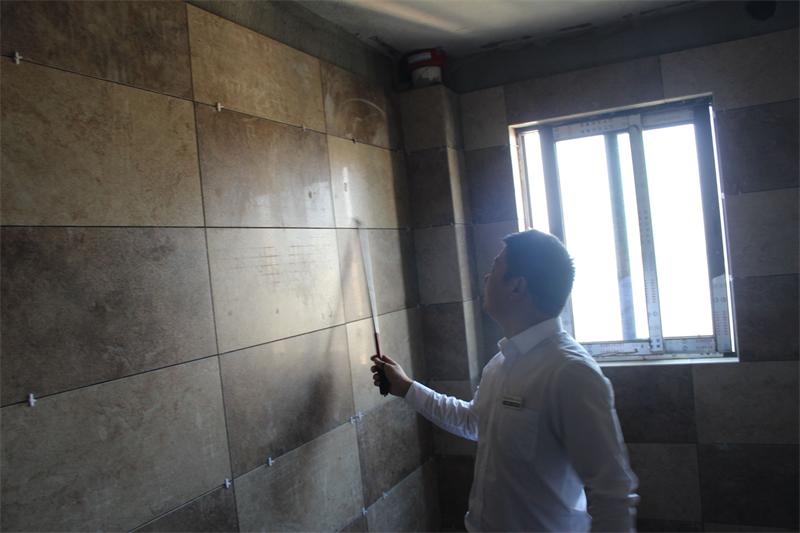 細微極致的成品保護、清晰明了的安全提醒、整齊的材料擺放……剛剛走出電梯還未步入新思路裝飾工地,就能感受到新思路對待工地的負責態度:入戶門窗都有保護膜“貼身”保護。在工地現場,各個工種工藝也都精彩展現:水電排版的清爽整齊、泥工的平整清潔、木工的精雕細琢……處處顯示出新思路高品質的工程質量。在檢查過程中,巡查人員嚴格遵循公司工地檢查的相關規定,認真仔細地敲打瓷磚,檢驗有沒有存在空鼓的情況;衣柜、抽屜的做工是否達到公司工藝標準;現場形象是否規范;各項保護工作是否到位。對于在檢查中發現的問題和不符合公司施工規范的地方,客服人員會認真記錄在案,并現場通知相關項目經理及時整改到位。而在巡查完之后,工程部還將在每周一的例會上通報工地巡查情況,及時總結問題和亮點,同時對工地進行評比,積極獎勵優秀工程質檢和項目經理。