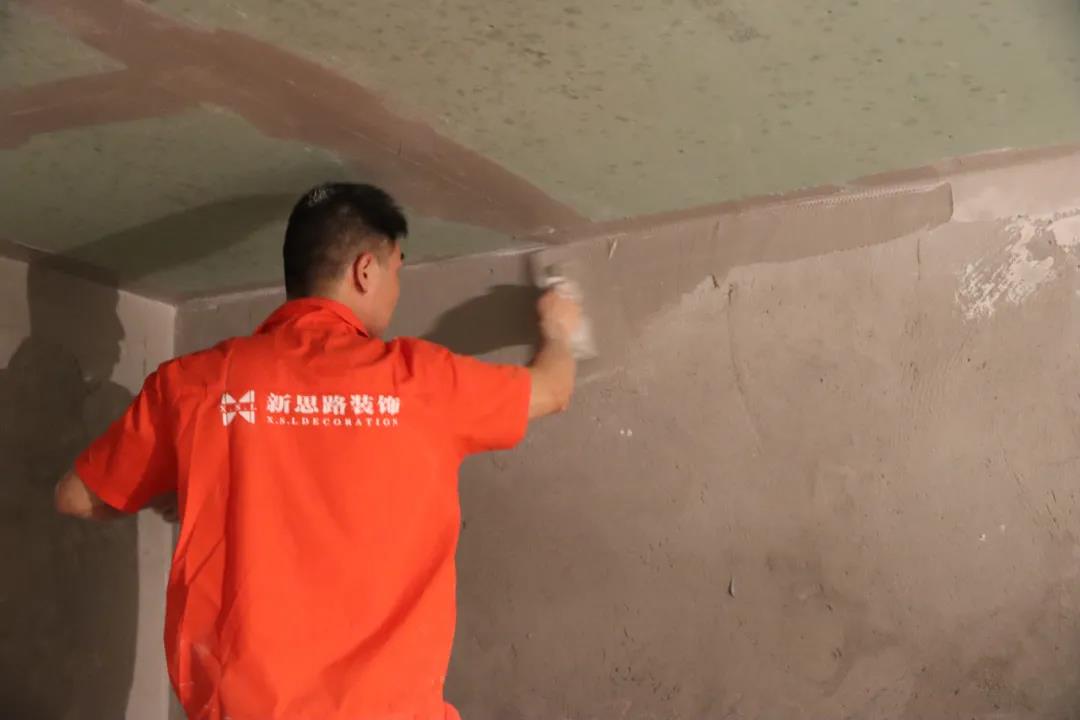我們來到的第一處工地是水電階段剛結束、正在進行硬裝階段的工地。客戶正在工地上查看情況,設計師敖元壩剛到現場,就和我們在施工的工人以及在場的客戶交流起來。