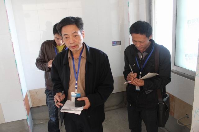 這次巡查按慣例以突擊的形式進行,力求為新思路的每一位客戶展現最真實的施工現場,做到讓每位客戶放心滿意。在巡查過程中,巡查小組都嚴格根據工程質量管理標準,對施工進度、工藝標準、現場環境以及施工安全等方面進行了細致的檢查。總體來說,大多數工地均完整地實施了公司新的工地形象標準,包括工作服、警示牌、物品堆放、滅火器以及成品保護都做得很到位,給人整潔干凈的整體印象,現場工人施工也有條不紊,都能依照國家標準嚴格施工,對此張總頻頻點頭,連連稱贊工人師傅們做的好,同時指示工程部當場做出獎勵措施。