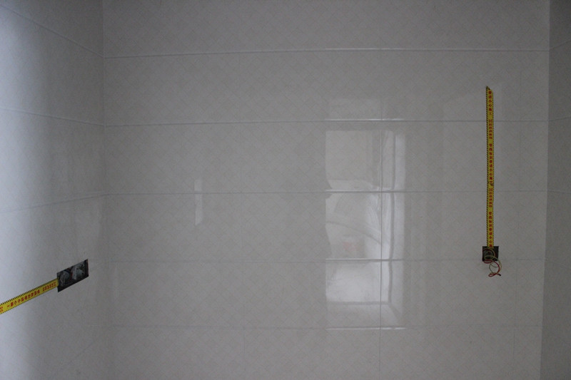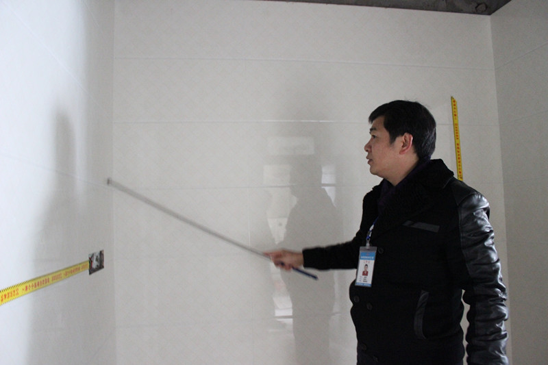 張總正在仔細查看墻面貼磚工藝