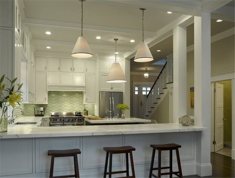 位置當然也會影響電路和給排水設計,尤其是離管道間或排水管較遠的角落時,排水就成了一大難題。排水管要有一定的傾斜角度。如果吧臺位置離室外近,可以將排水管接到戶外,以單獨的管線排水;如果須將管線接到管道間而傾斜度又不足,必須從天花板或者墻內安管時,施工就比較麻煩,費用也會跟著提高。